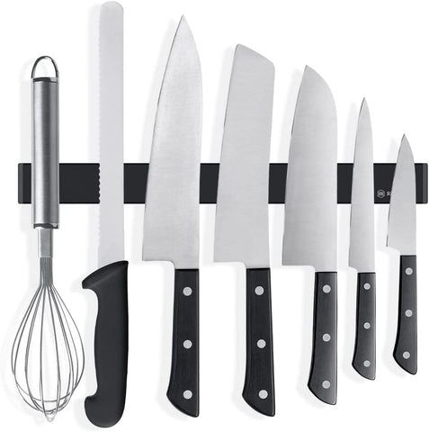 12 Inch Knife Magnetic Strip No Drilling, Kitchen Knife Magnetic Holder for Wall, Kitchen Accessories Organizer Bar or Used in Organizing Tools (Stainless Steel-12 Inch, Black)
