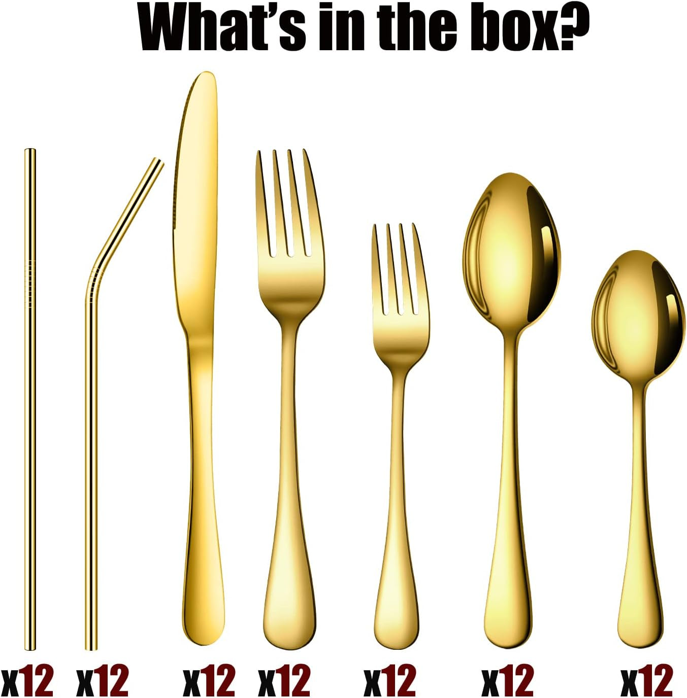• Image of 84 Pieces Gold Silverware Service for 12 Flatware Set Stainless Steel Utensils Cutlery Set Dishwasher Safe Flatware (Gold, 84)