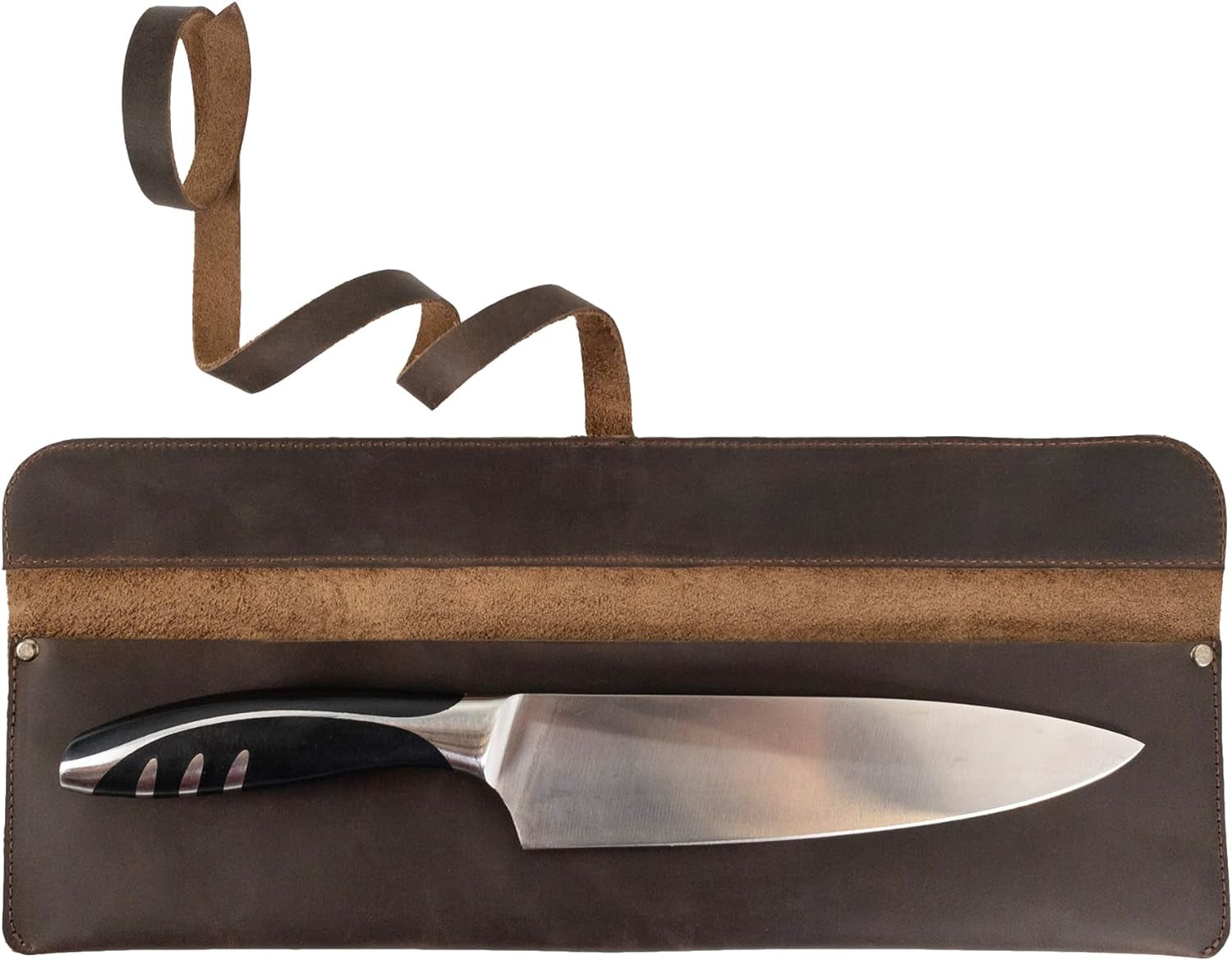 - Large Chef Knife Roll Bag - Brazilian Leather - California Brown -...