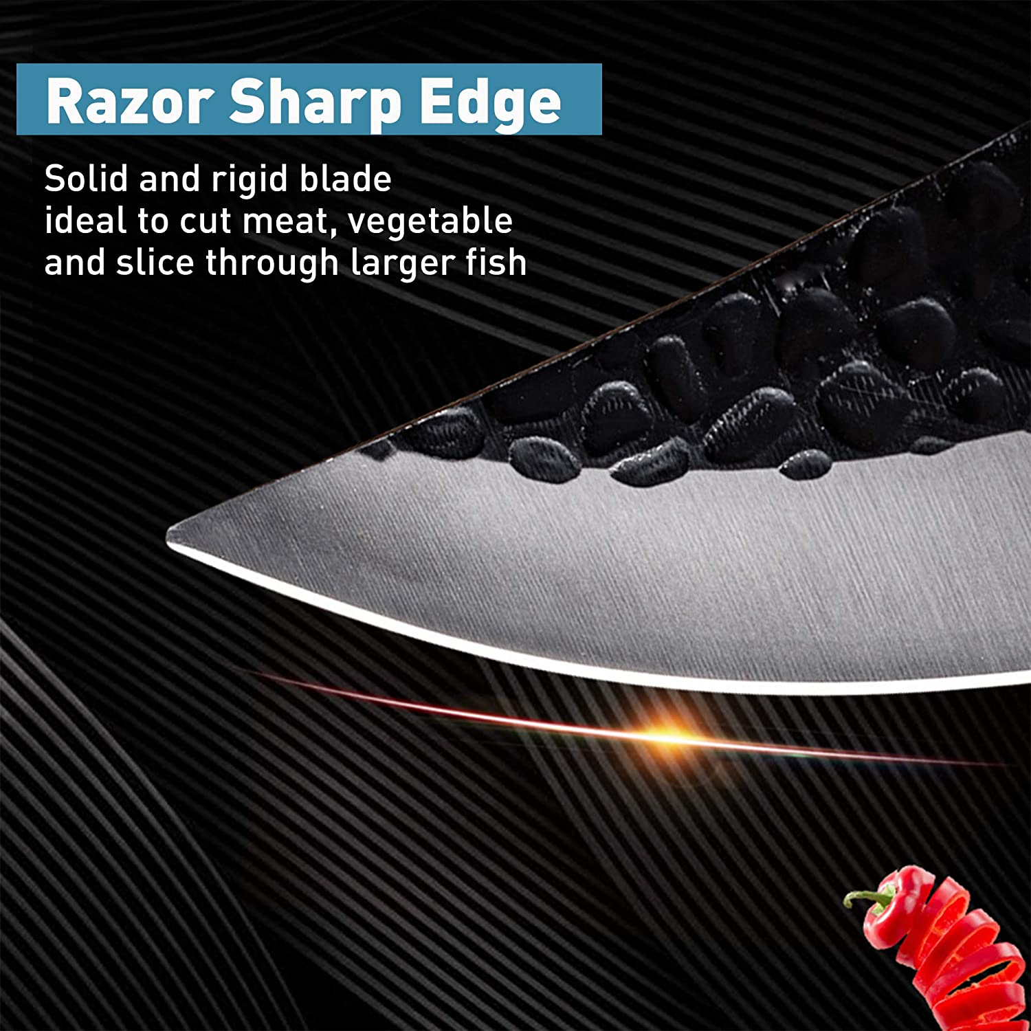 • Image of Viking Knives, Butcher Knife Black Forged Boning Knives with Sheath Japanese Fillet Meat Cleaver Knives Full Tang Japan Knives Chef Knife for Kitchen, Camping, BBQ (Black)