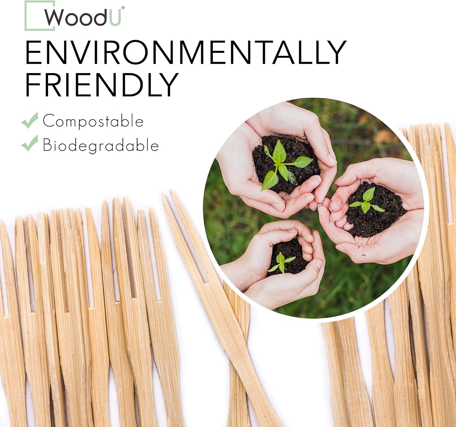 • Image of Wooden Appetizer Forks 3.5" 100 Pcs - Toothpicks for Appetizers - Disposable Bamboo Skewers, Fruit Fork
