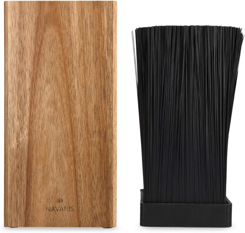 • Image of Wooden Kitchen Knife Block - Universal Bristle Knife Holder Storage Stand - Acacia Wood Knife Block - Upright Design 9.4 X 4.7 X 4.7 Inches