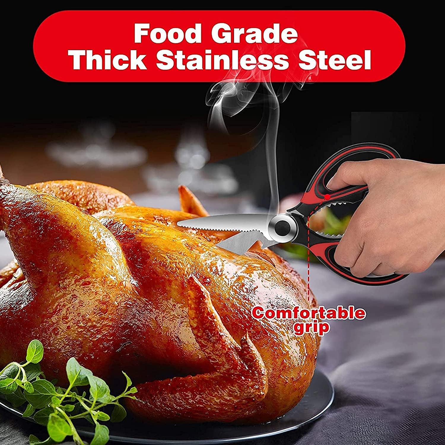 Heavy Duty Kitchen Shears with Protective Sheath Kitchen Meat Scissors, Dishwasher Safe Cooking Scissors, for Chicken, Poultry, Fish, Herbs, Black+Red