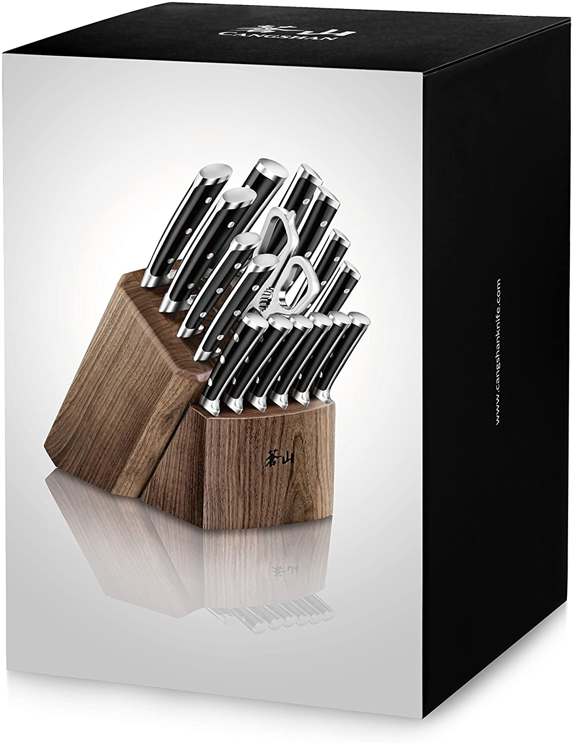 Cangshan TS Series 1020885 Swedish Sandvik 14C28N Steel Forged 17-Piece Knife Block Set, Walnut