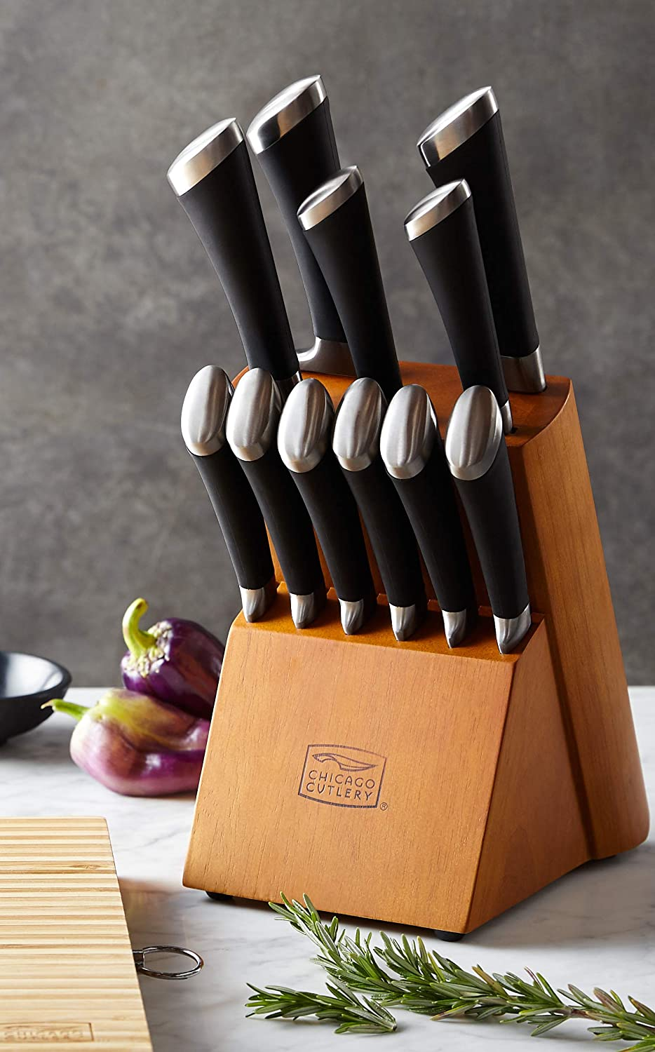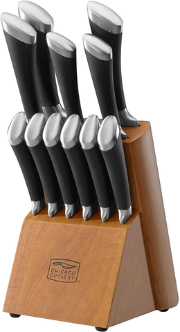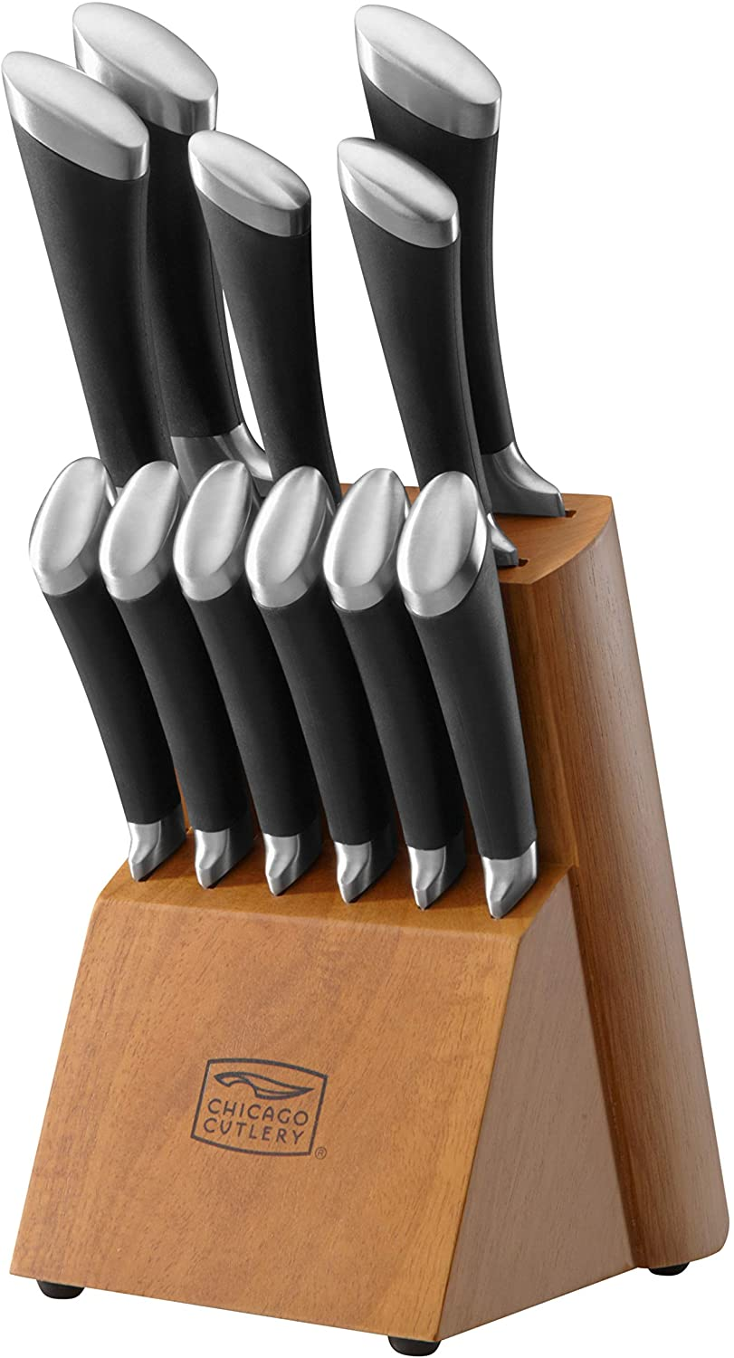 Chicago Cutlery Fusion 12 Piece Forged Premium Knife Block Set with Wooden Storage Block | Cushion-Grip Handles with Stainless Steel Blades | Kitchen Knife Set