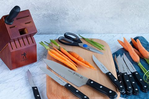 • Image of HENCKELS Solution 12-Pc Knife Set with Block, Chef Knife, Paring Knife, Steak Knife Set, Grey, Stainless Steel