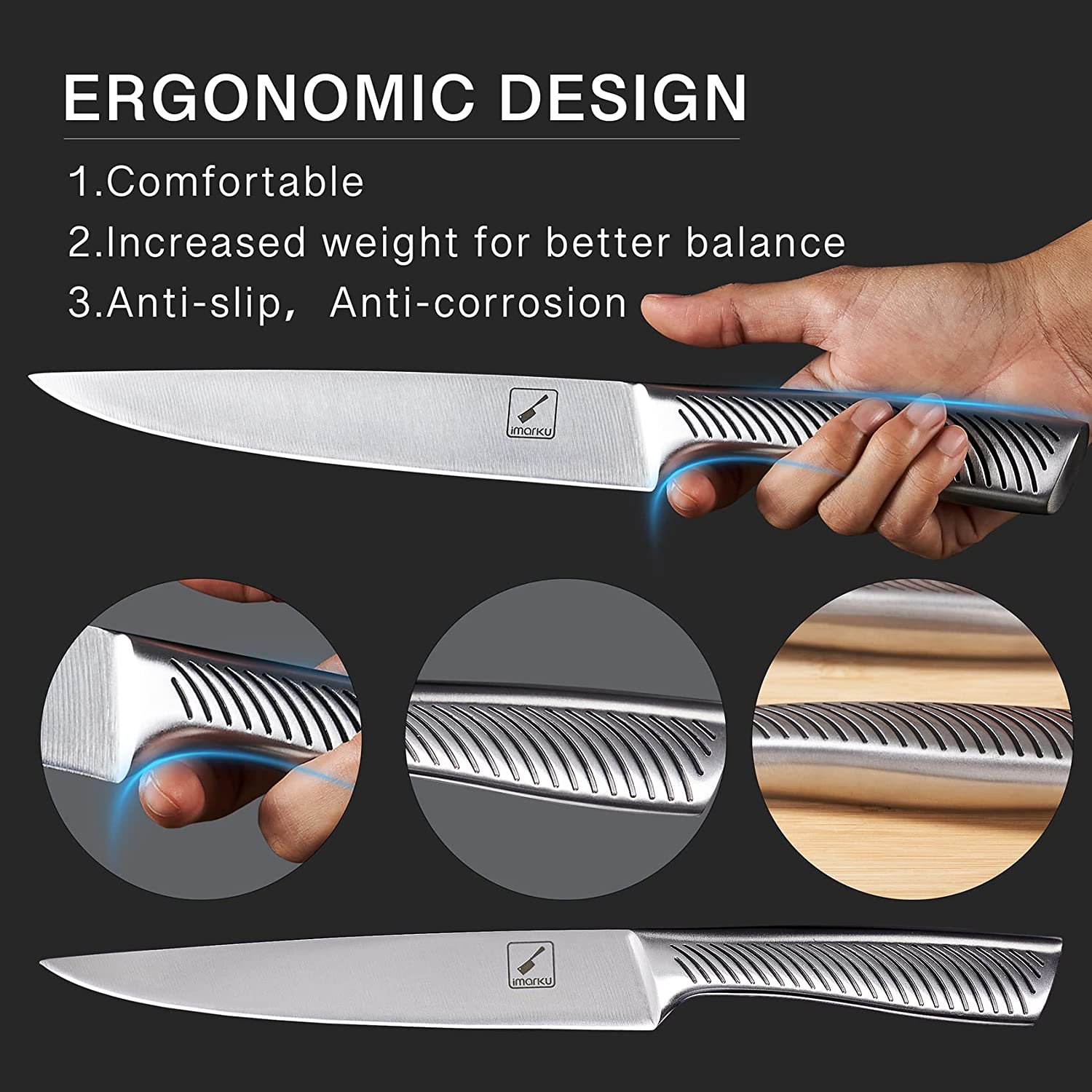 • Image of Kitchen Knife Set with Block, Imarku 14-Piece High Carbon Stainless Steel Knife Set, Dishwasher Safe Kitchen Knives, Chef Knife Set with Built-In Sharpener, Ergonomic Handle
