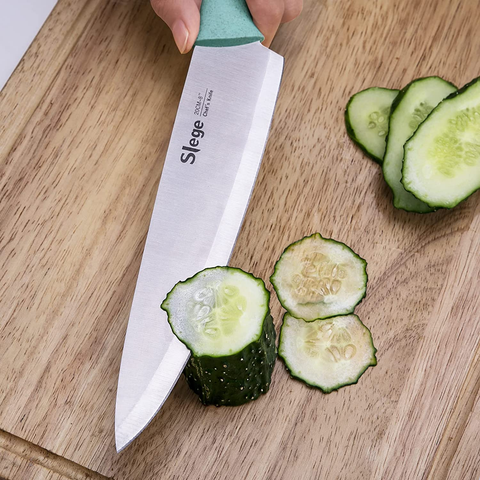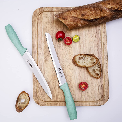 • Image of Knife Set, 15-Piece Kitchen Knifes with Wooden Block, Professional Chef Knife Sets with Sharpener Scissors, Stainless Steel Sharp Knives for Home, Green Wheat Straw Handle, Light