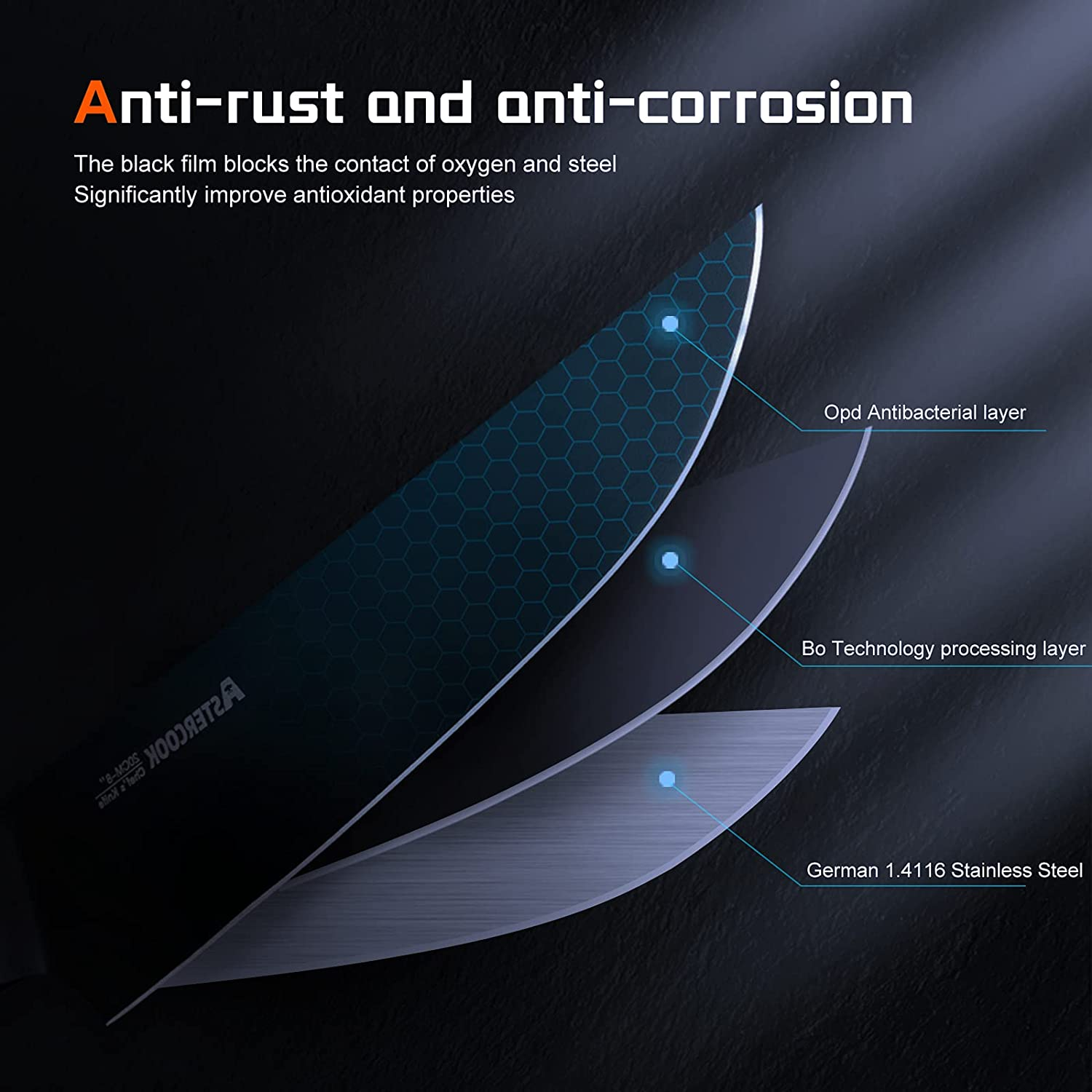 • Image of Knife Set, 15 Pieces Chef Knife Set with Block for Kitchen, German Stainless Steel Knife Block Set, Dishwasher Safe, Elegant Black
