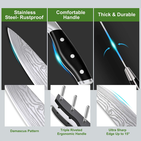 • Image of Knife Set, 23 Pcs Kitchen Knife Set with Block & Sharpener Rod, High Carbon Stainless Steel Chef Knife Set, Ultra Sharp, Full-Tang Design