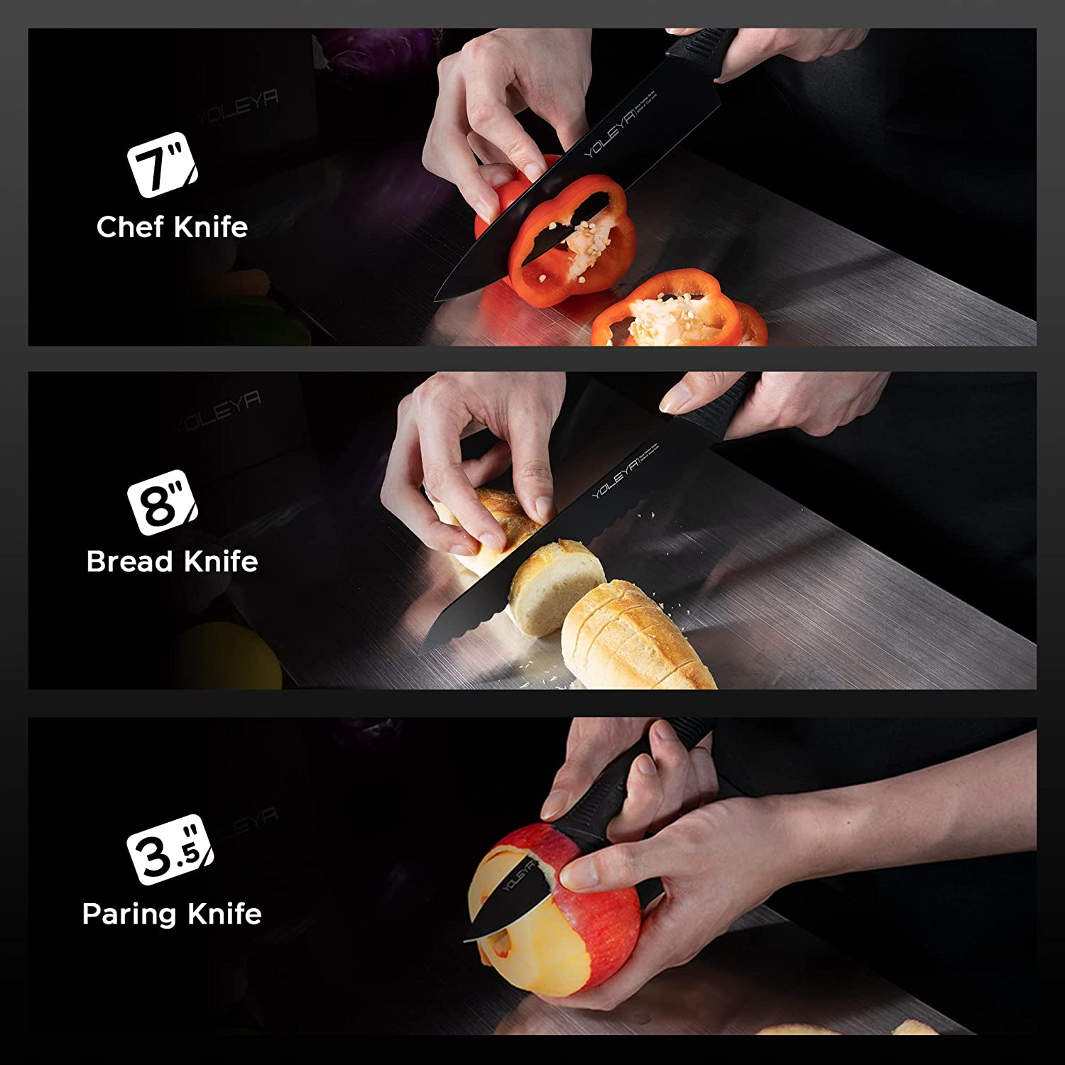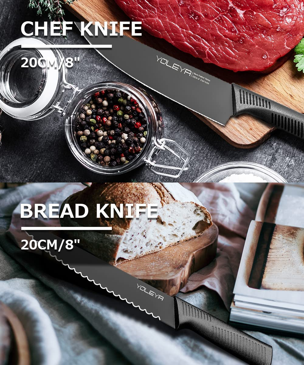 Knife Set,Yoleya 15 Pieces Kitchen Knife Set Non Stick Coating Knife Set with Block,Professional Knives Set for Kitchen