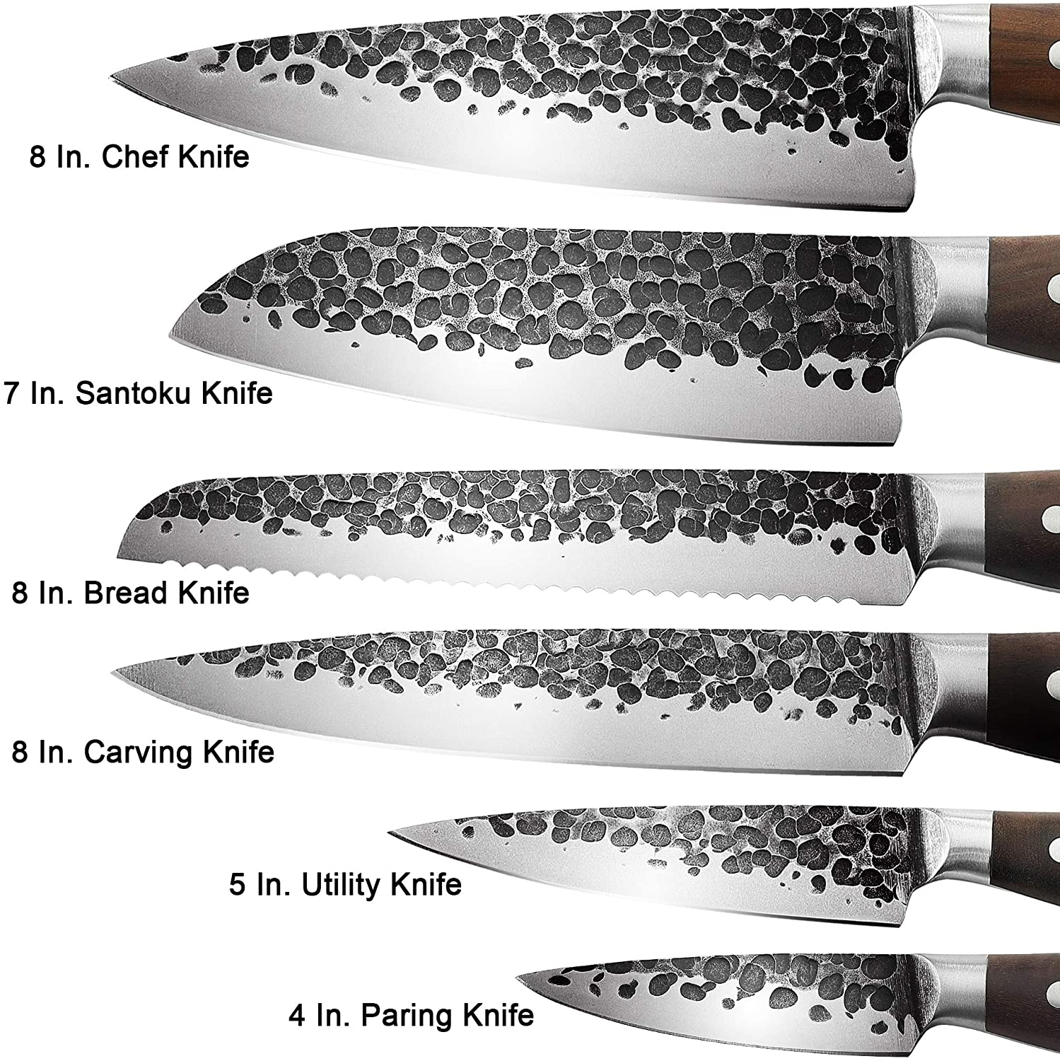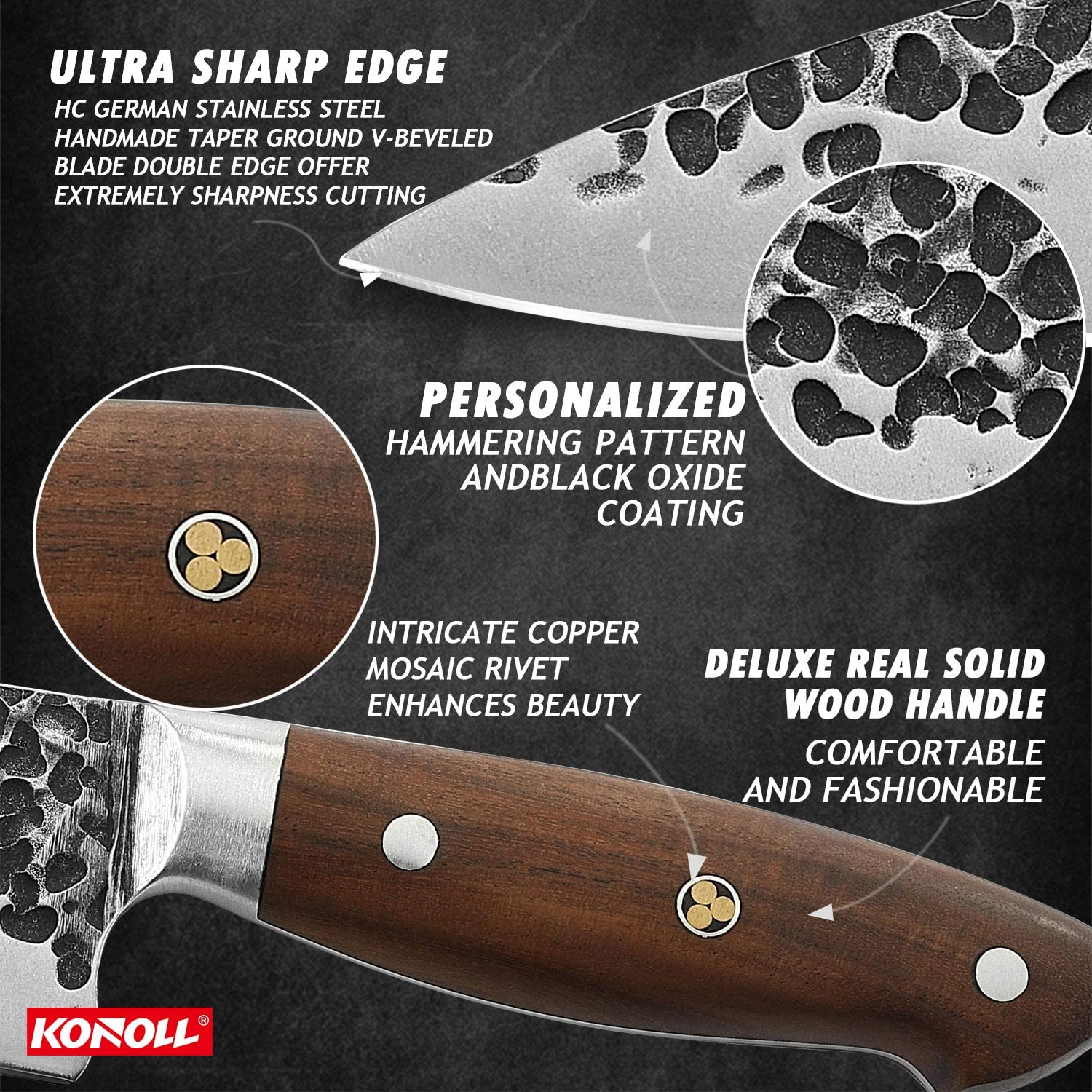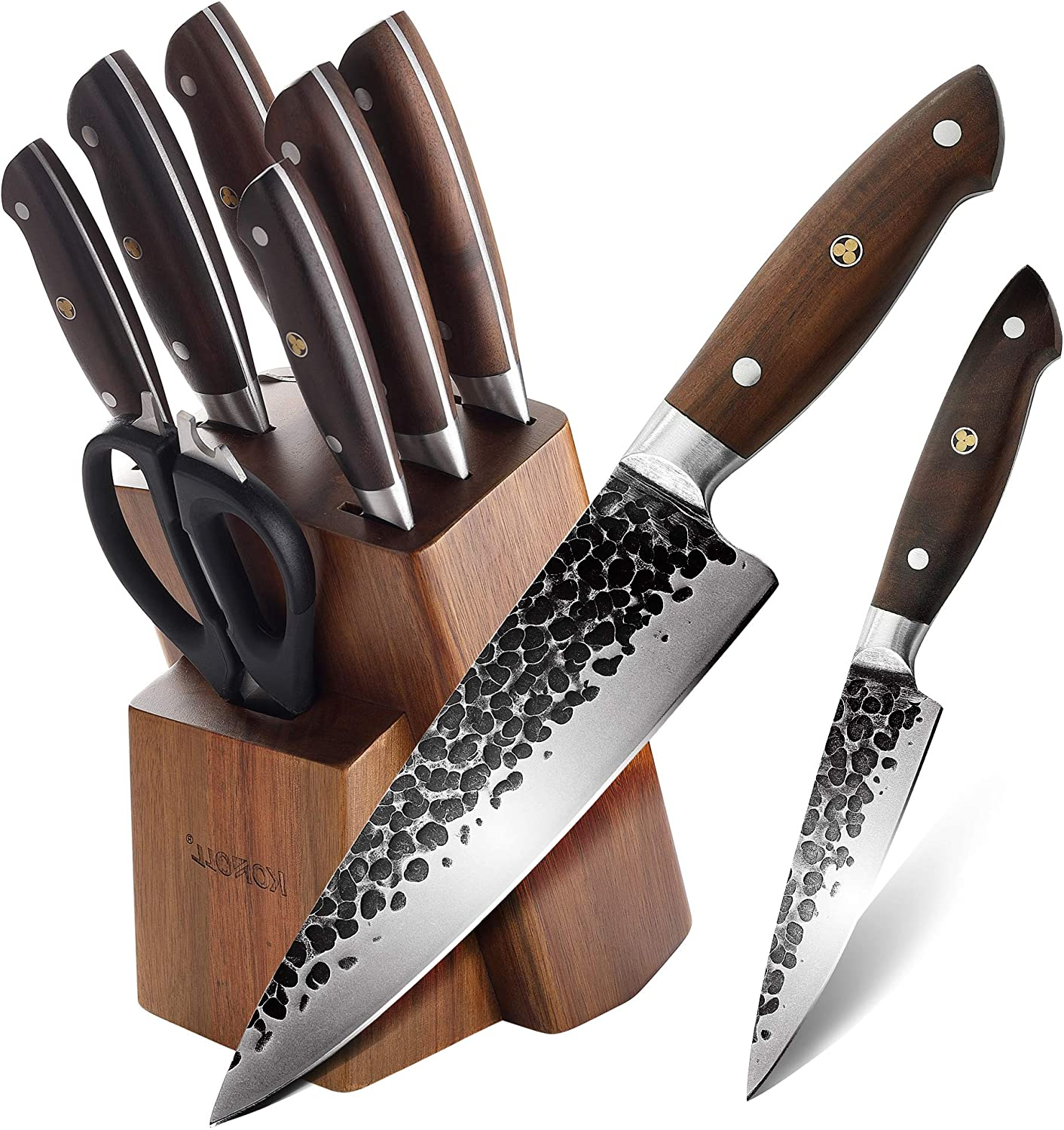 KONOLL Kitchen Knife Block Set 9 Pcs Chef Knife Box Set Ultra Sharp Forged Knives Set, Meat Cleaver HC Stainless German Steel with Full Tang Wood Handle (Knife Block Set 9 Pcs)