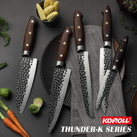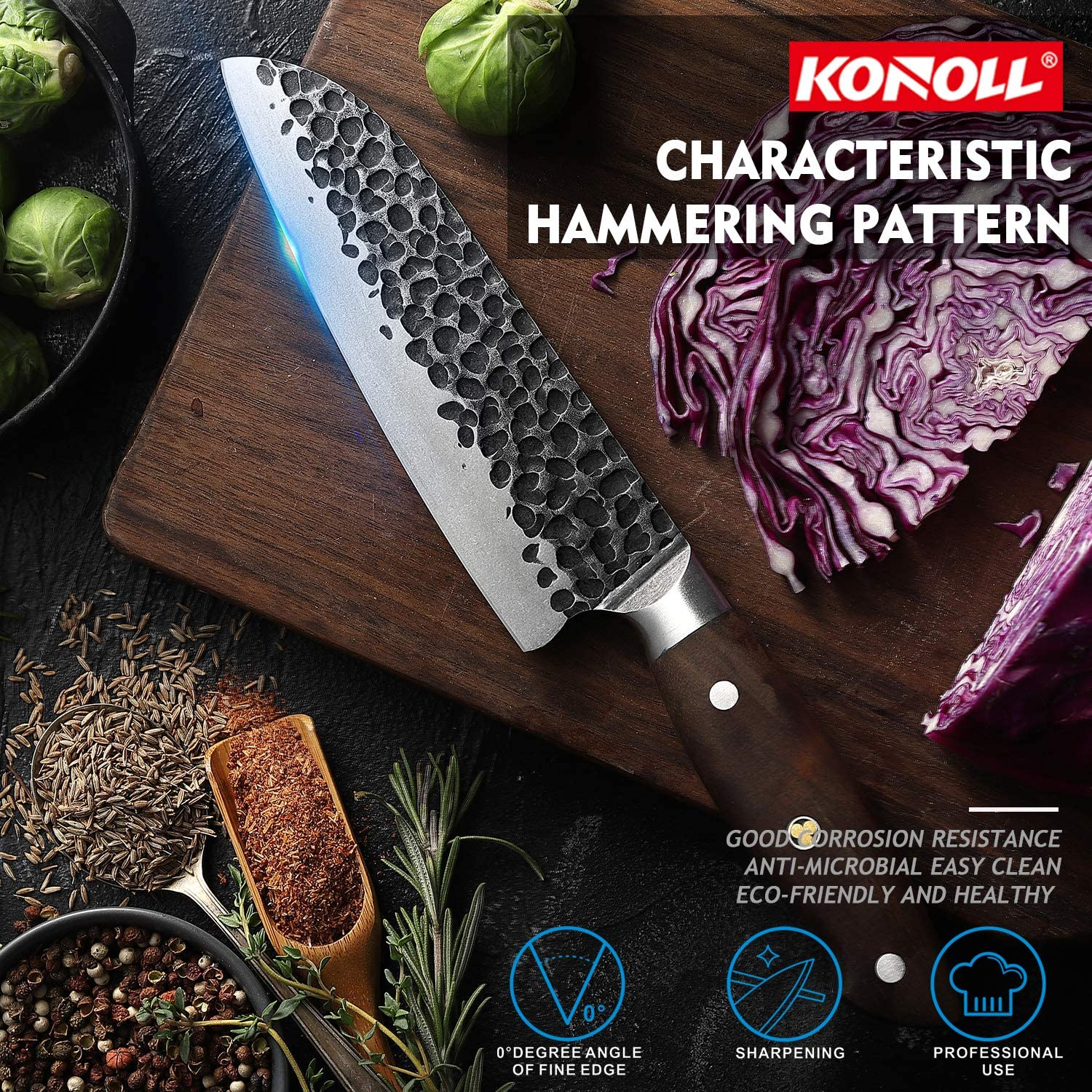 • Image of KONOLL Santoku Knife Janpan Chefs Knife Cleaver 7-Inch Forged Handmade Professional Kitchen Knife, German High Carbon Steel with Wood Handle