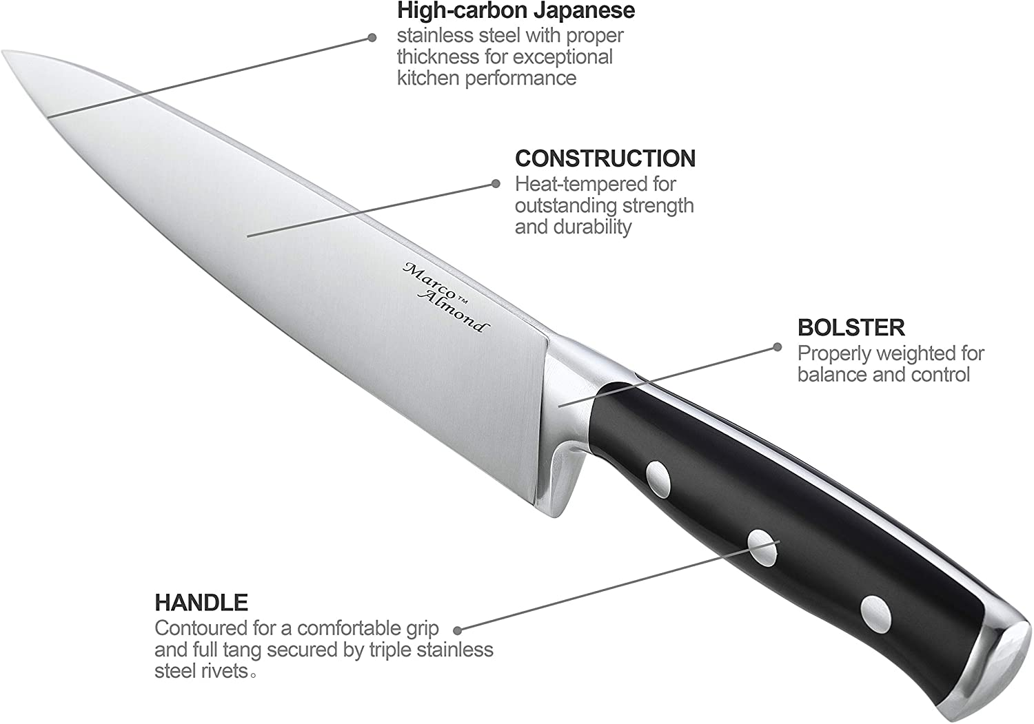 • Image of Marco Almond KYA31 Japanese Stainless Steel Knives Set, 14 Pieces Cutlery Set Kitchen Knife Sets in Hard Wood Block with Built in Sharpener, Full Tang Knife Block Set, Graphite Block, Best Gift