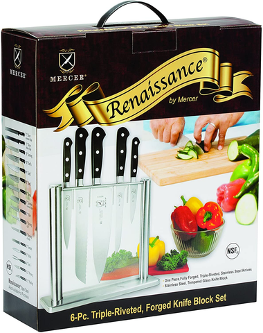 Mercer Culinary M23500 Renaissance 6-Piece Forged Knife Block Set, Tempered Glass Block
