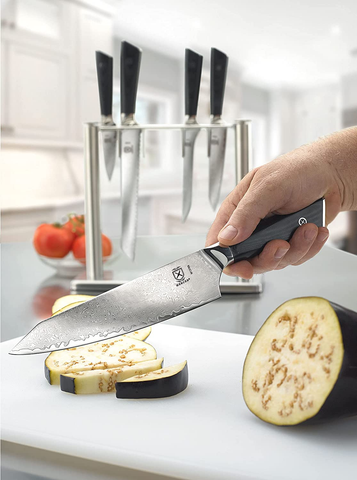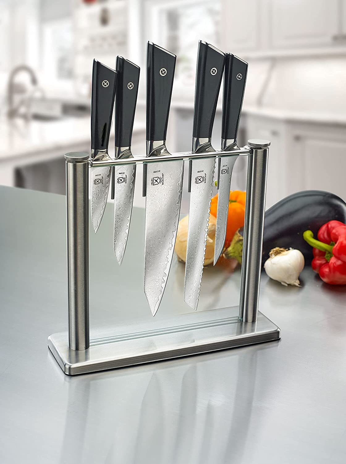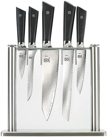Mercer Culinary Premium Grade Super Steel 6-Piece Knife Set with Glass Block Stand, G10 Handles