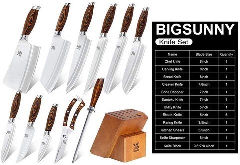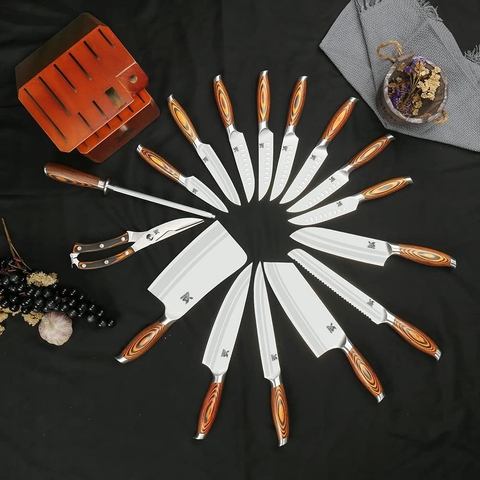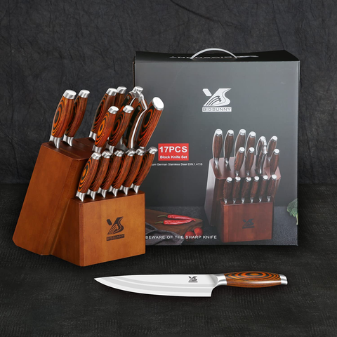 • Image of MSY BIGSUNNY Knife Block Set 17-Piece Knife Set with Wooden Block - German Steel Perfect Cutlery Set Gift