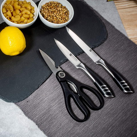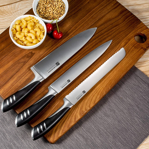 Premium 8-Piece German High Carbon Stainless Steel Kitchen Knives Set with Rubber Wood Block, Professional Double Forged Full Tang Chef Knife Set