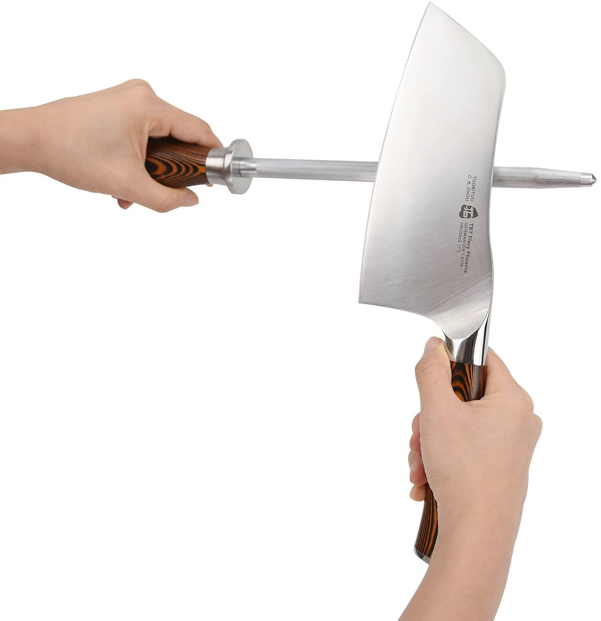 TUO 8-Pcs Kitchen Knife Set - Forged German X50Crmov15 Steel - Rust Resistant - Full Tang Pakkawood Ergonomic Handle - Kitchen Knives Set with Wooden Block - Fiery Phoenix Series