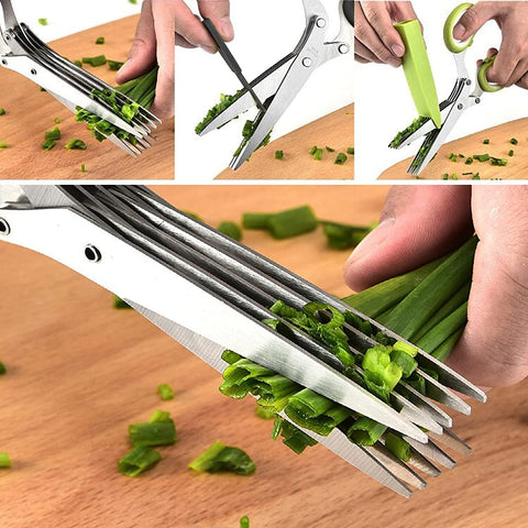 2 Pcs Herb Scissors, Multi-Blade Herb Scissors with Cover and Cleaning Comb, Stainless Steel Vegetable Scissors for Cutting Cilantro Onion Salad Garden Herbs, Heavy Kitchen Scissors (Green) (Blue)